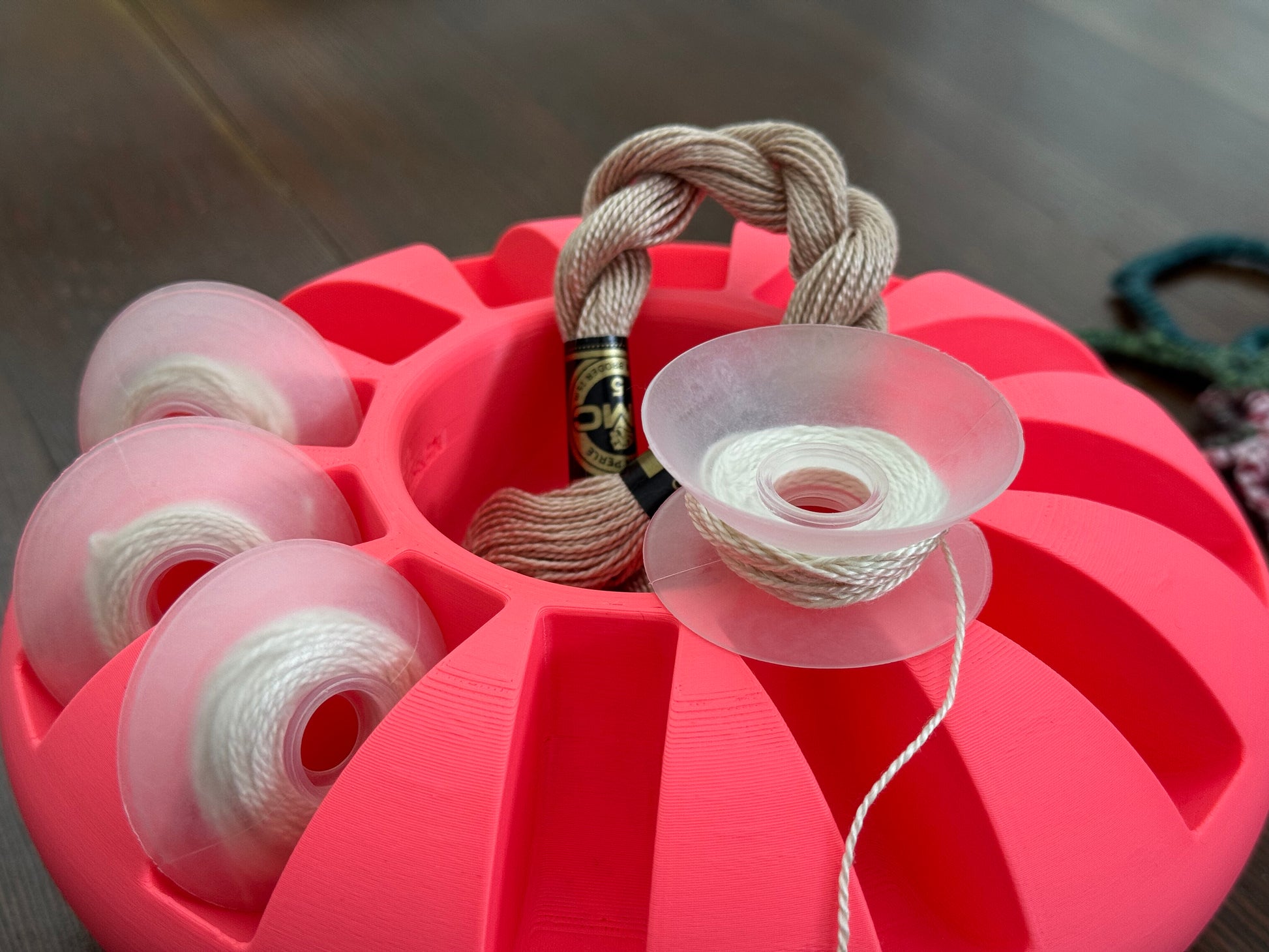 Whether you're working on your latest macrame project, setting up for another kumihimo braid, keeping crochet thread tamed, weaving a tapestry, or trying your hand at intarsia knitting, the BobbinShip is an essential addition to your crafting supplies. Its sturdy construction and large, flat base make it stable on any surface. Easily store up to twelve thread bobbins, any tools, and spare thread.