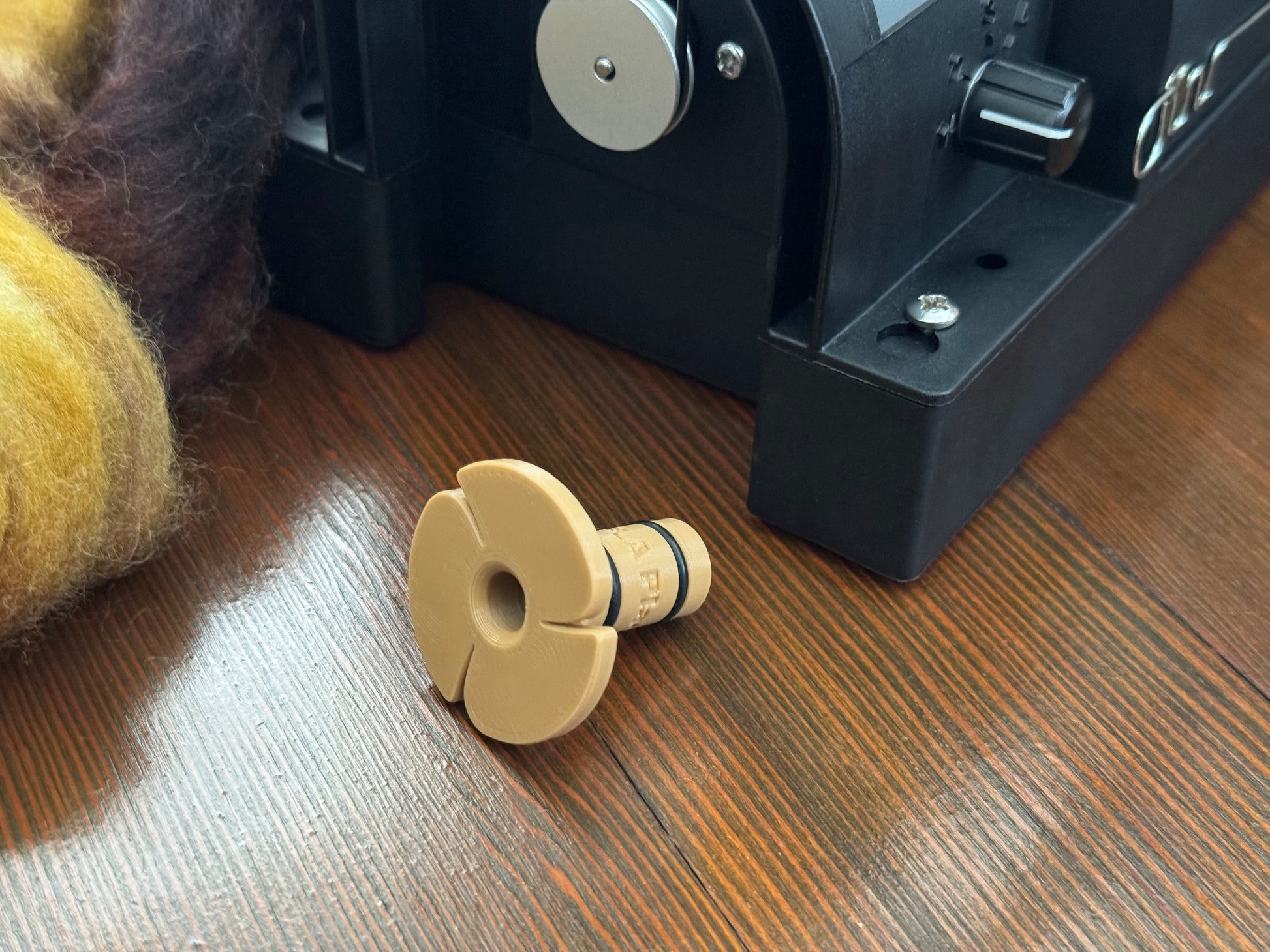 This essential add-on for your EEW 6.x combines the regular orifice reducer with a built-in spin minder to securely hold your spinning in place while you take a break. The tapered slots easily hold on to spun fiber of all thicknesses, and the no-slip rubber o-rings hold the orifice reducer snugly in place. Keep your hard work from coming undone with this simple, easy-to-install tool.