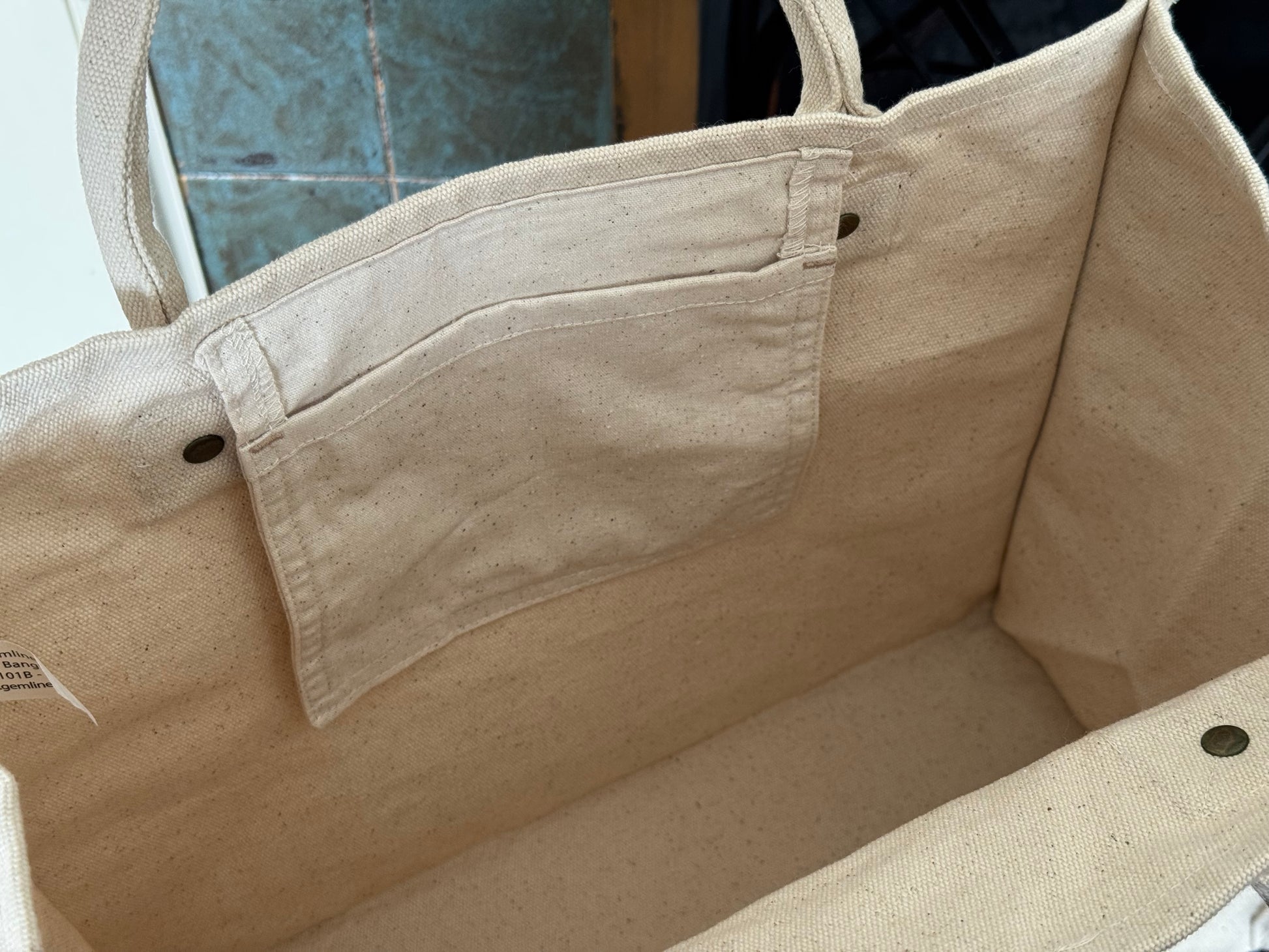The bags are sourced from Bangladesh, and embroidered in the United States. This product is made in small batches especially for MKSC. Making products on demand instead of in bulk helps reduce overproduction, so thank you for making thoughtful purchasing decisions!