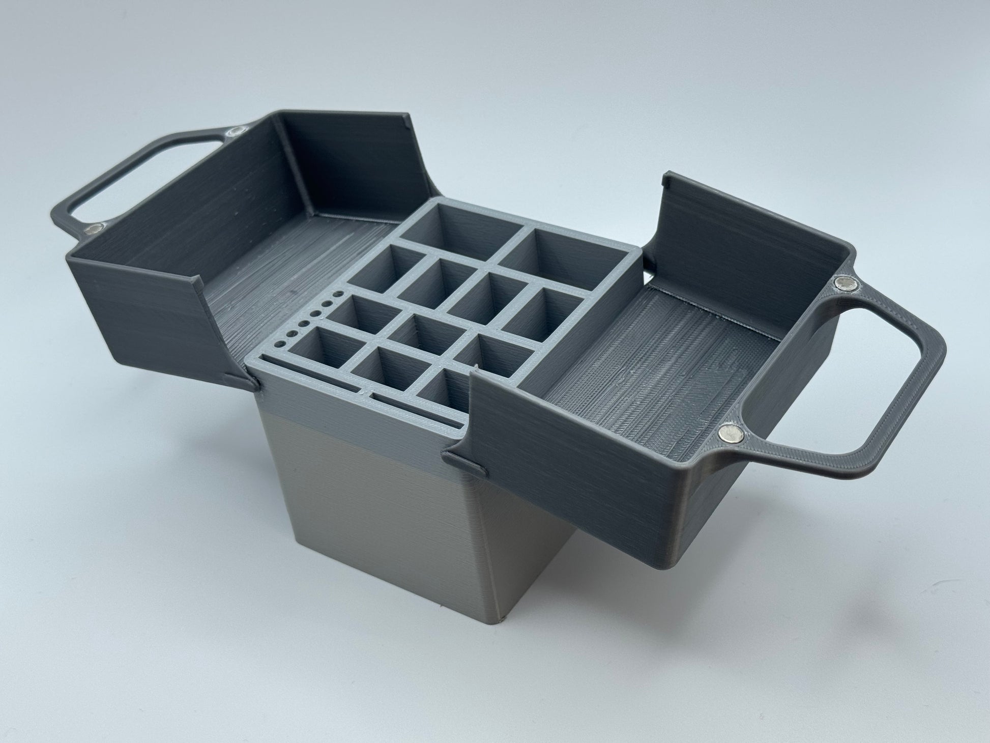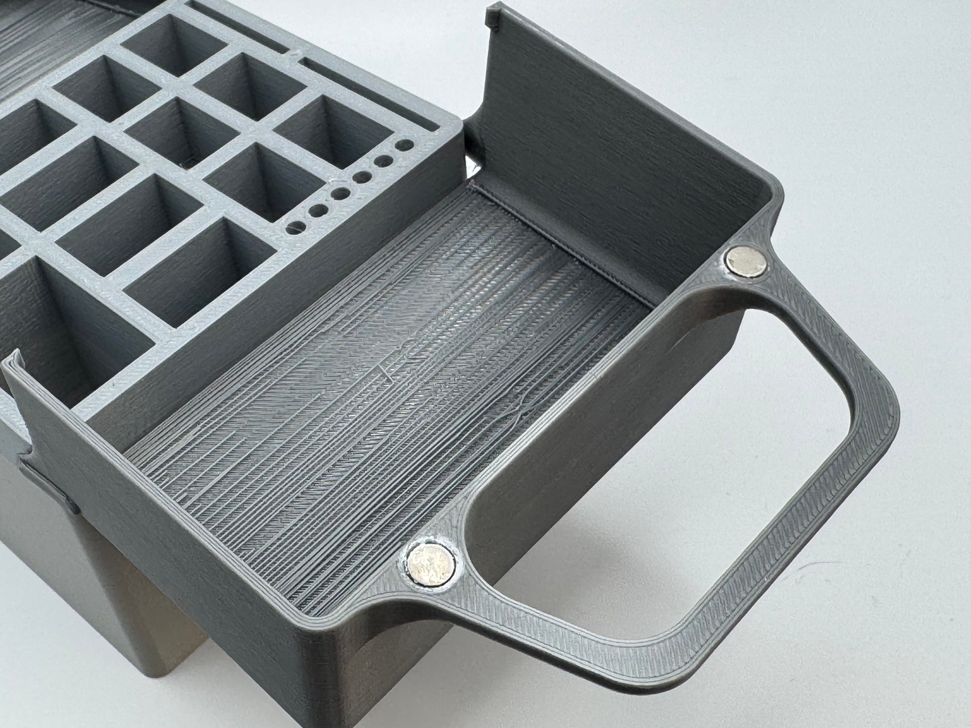 - The lid magnets are glued into holes rather than embedded into the lids during printing