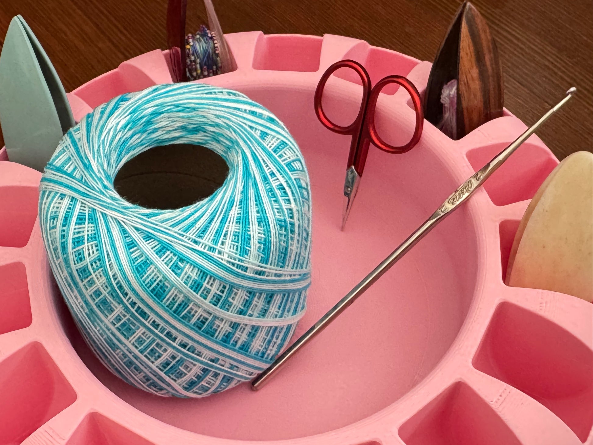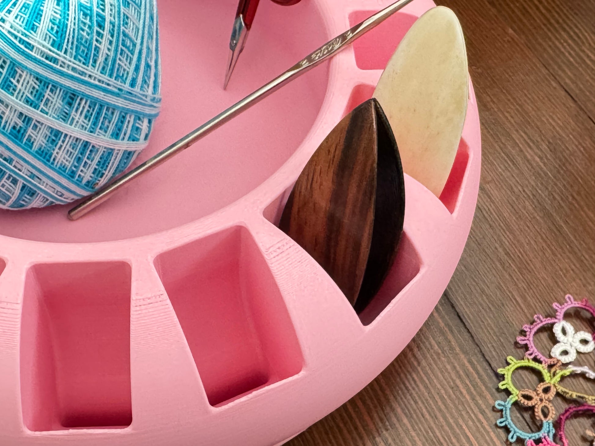 Whether you’re a fan of helix tatting or just want a way to tame the ever-growing pile of shuttles, this DIY 3D printable shuttle caddy helps you keep them organized and ready for your next project. Its sturdy construction and large, flat base make it stable on any surface. Easily store up to sixteen shuttles and your work in progress or a ball of thread.