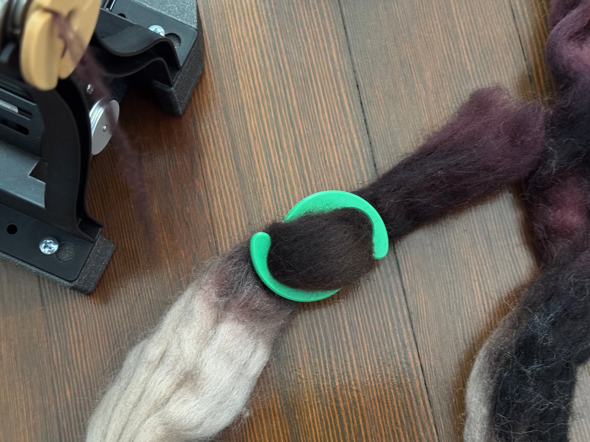Depending on how thick your fiber is, you may need to use the clip differently. Dense top will usually be fine with one pass through each side of the SpinCue, but pencil roving or less dense fibers may benefit from looping it around once or twice. Slicker fibers like silk blends will also be more secure with multiple wraps.