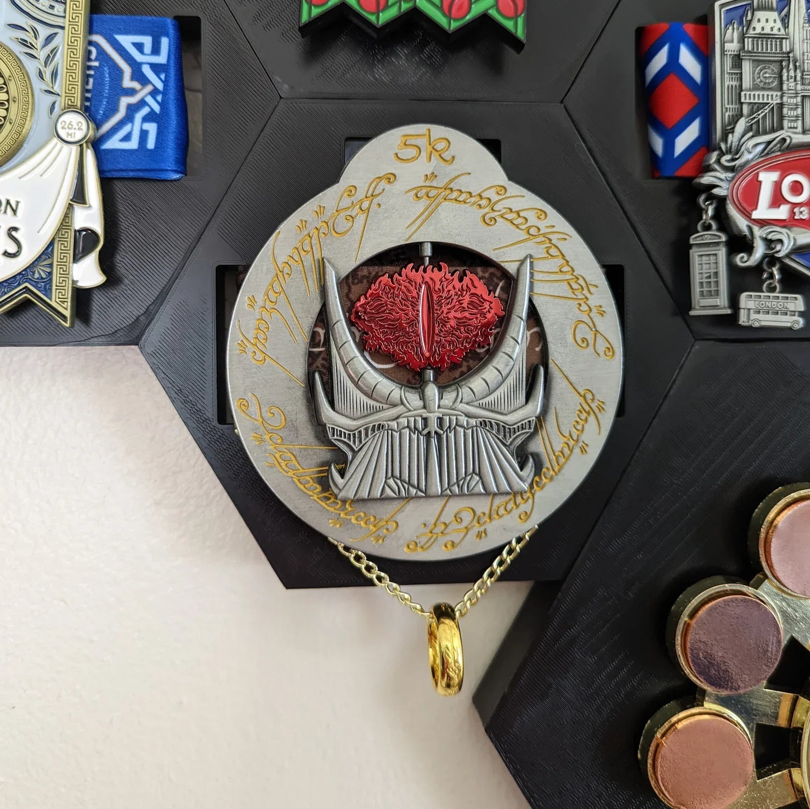 This modular medal display plaque is based on the official hexagon honeycomb setup offered by The Conqueror Challenge to display your virtual distance challenge medals. Whether you've just completed a marathon or are working through virtual races at your own pace, show off your hard-earned medals in style with these easy-to-hang, single-piece plaques. The honeycomb shape lines up easily with plaques you've already hung on your wall for a modular, expand-as-you-go brag board.